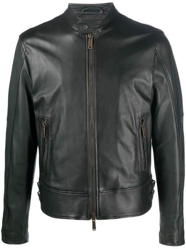 Men's Black Leather Side-Tab Biker Jacket