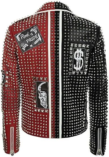 Men's Two-tone Leather Punk Rock Motorcycle Jacket