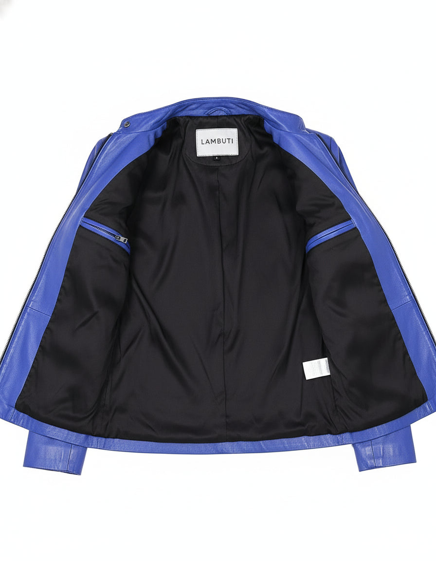 Women's Cobalt Blue Leather Moto Jacket