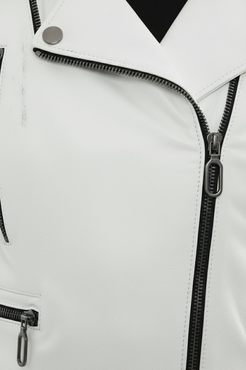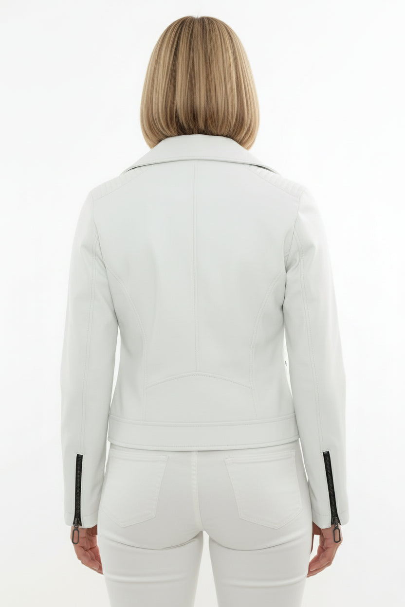 Women's White Leather Moto Jacket